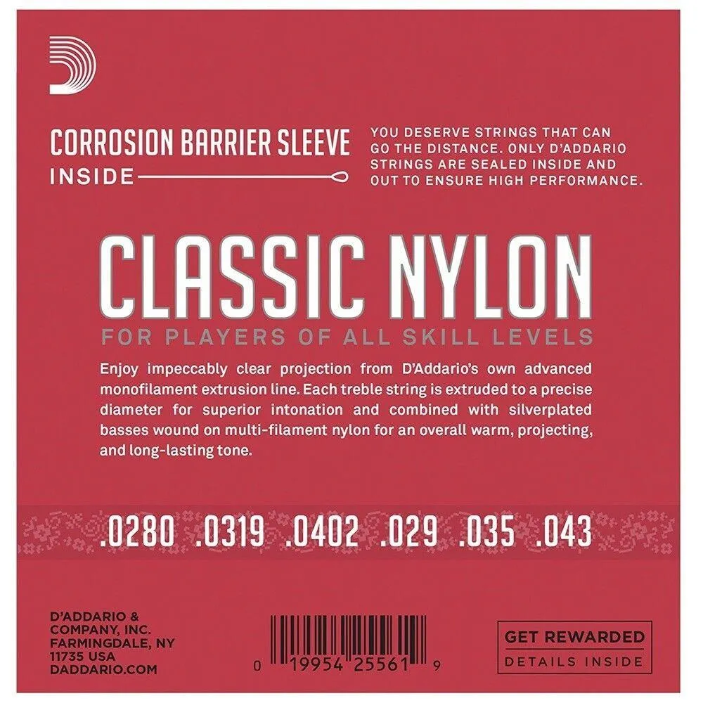 The EJ27N-3P pack includes three full sets of D’Addario EJ27N student nylon classical guitar strings.