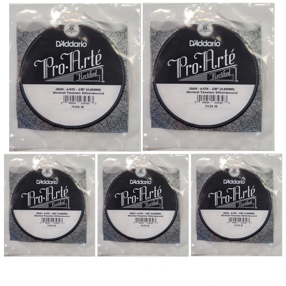 5 x D'Addario J3005 Rectified Classical Guitar Single String 5th A, Normal Tension