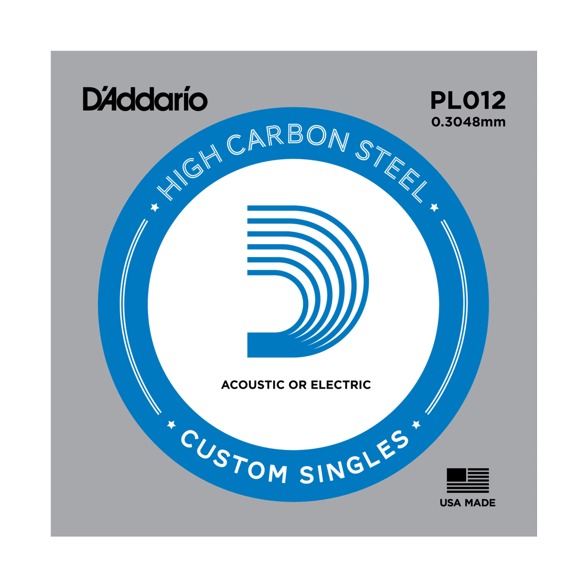 .012 gauge plain steel string for acoustic or electricguitarSuperb, long-lasting tonePerfect as a replacement string or for creatingcustomized setsMade in the U.S.A. for the highest quality andperformance