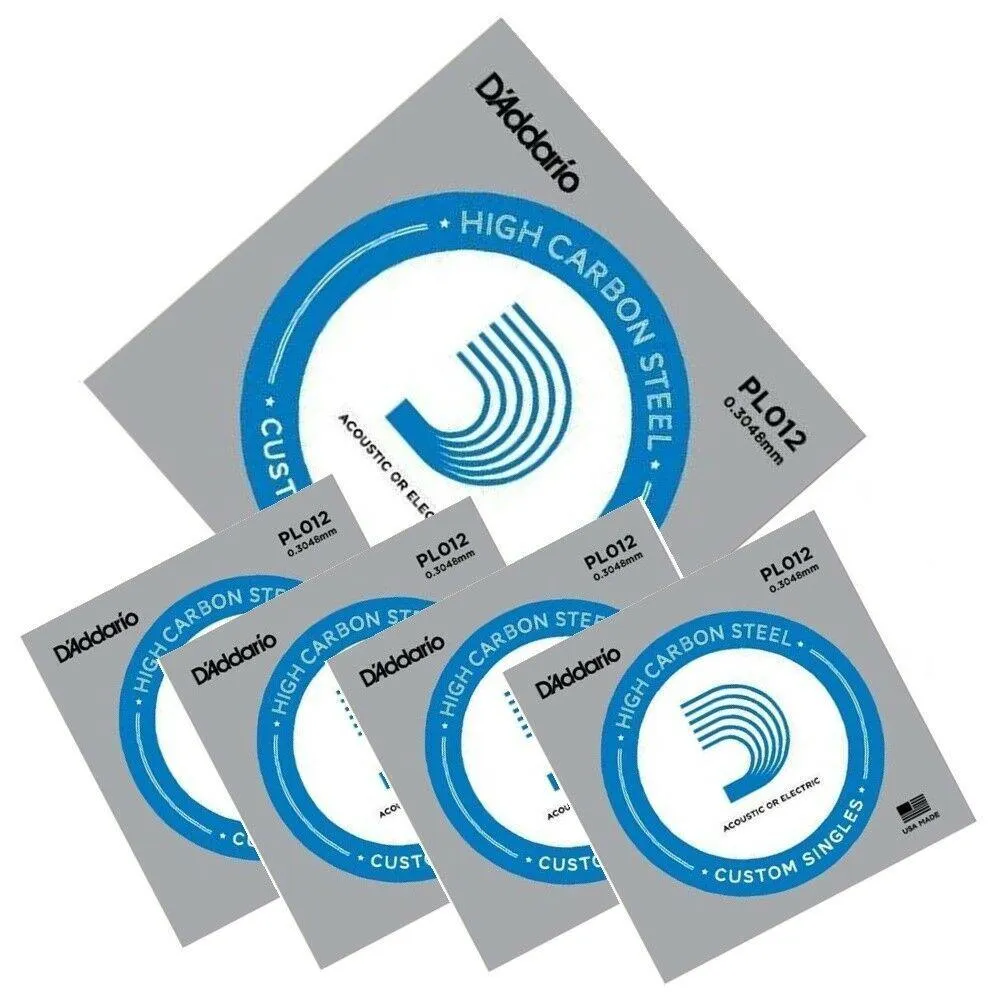 5 x D'Addario PL012 Single Plain Steel .012 Acoustic or Electric Guitar Strings