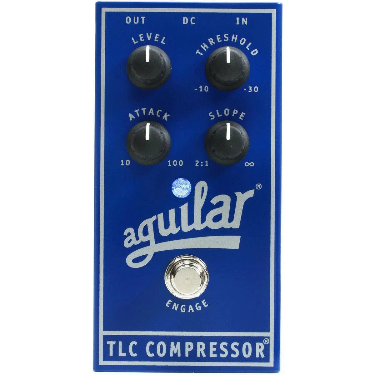 The TLC Compressor features a four-knob layout to provide a full set ofimportant features. Using a wide range of attack times and variablethreshold and slope levels, you'll be able to dial in just the rightsound. Aguilar's TLC Compressor gives you a range of control usuallyfound only in expensive studio compressors.