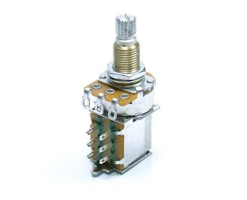 Alpha 500k Metric Thread Audio Taper 'Push Pull' Pot. Used to control pickup phasing series/parallel switching coil-taps and more.