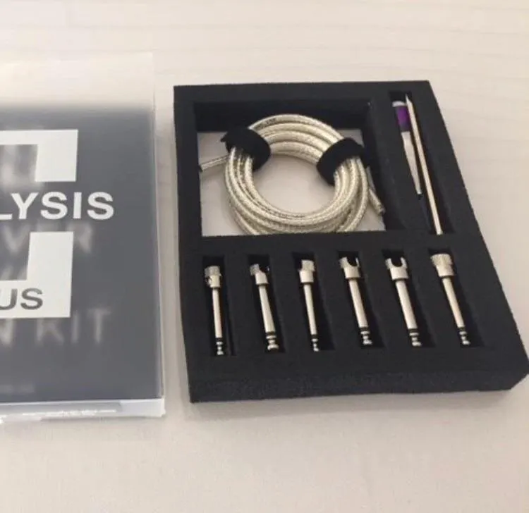 With this kit you can make custom length pedal board cables. The kit contains 4 ft of Analysis Plus Silver Oval Thin cable, 6 solderless connectors and a screw driver.