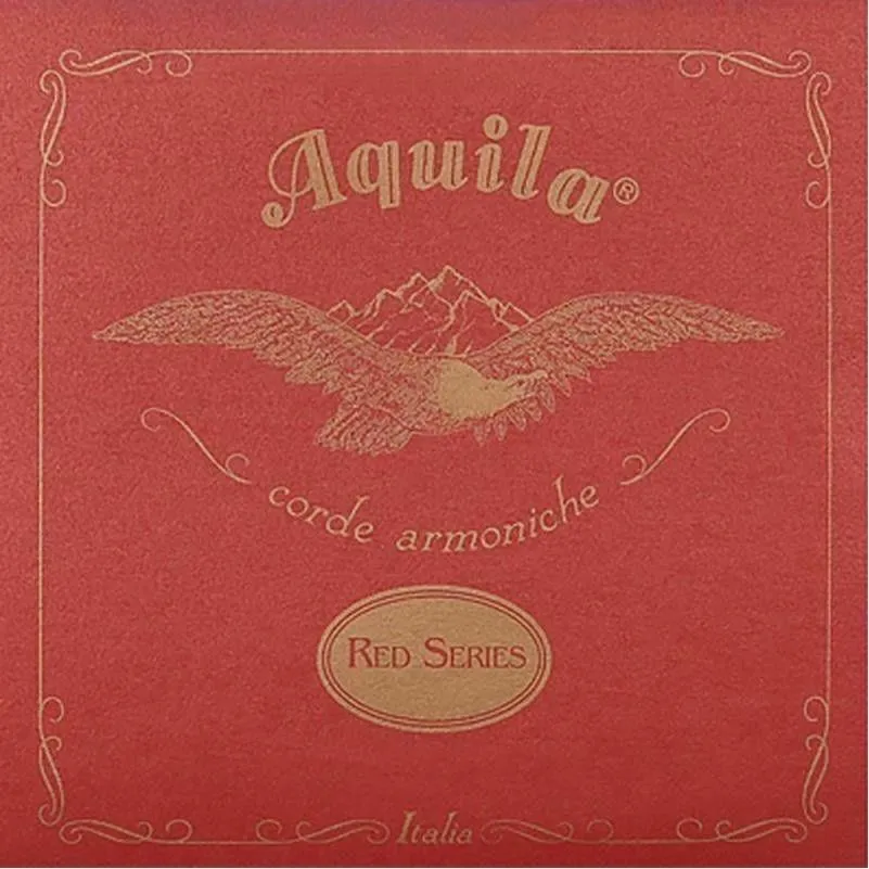 Starting with Nylgut, Aquila adds red copper powder to increase thedensity of the string to almost twice as much. This results in astiffer string capable of lower tunings, less breakage and betterintonation. Filing of the nut slot may be required.