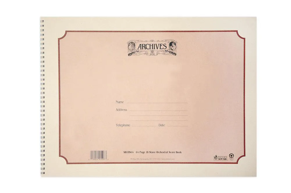Archives Spiral-Bound Manuscript Book, 18 Stave, 64 pages, 12 x 16 inches