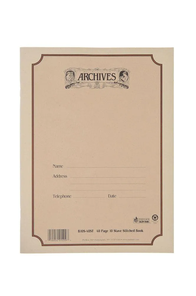 Archives Standard Bound Manuscript Paper Book, 10 Stave, 48 Pages