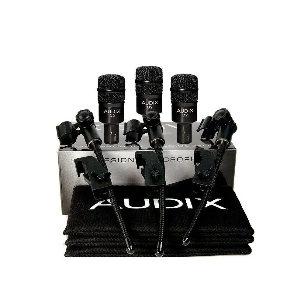 The Audix D2 Trio is everything you need for miking your toms, all in one convenient package. The tailored frequency response of the D2 drum microphone gives you all the punch, clarity and warmth needed for percussion without being muddy or boomy. The proprietary VLMTM (Very LowMass) capsule technology provides superior transient response and more accurately captures every detail of your music. The included DVICE mounts let you squeeze these microphones into tight places eliminating the need for bulky microphone stands.