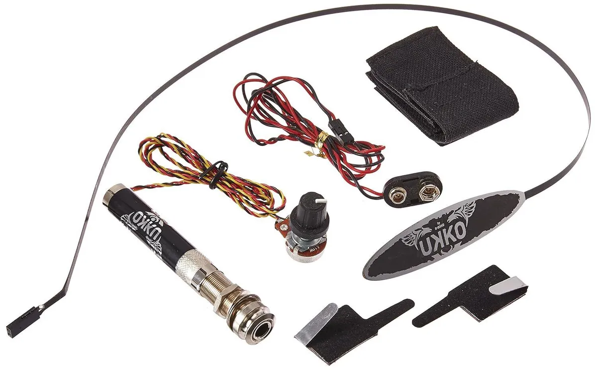 The A5T Preamp & Tuner features a slider 3-band EQ and volume control, notch filter and frequency rotary controls, phase button, low battery LED, and full range chromatic tuner. 9-volt battery powered HZZLess circuit. Bundle includes top selling 22R pickup.