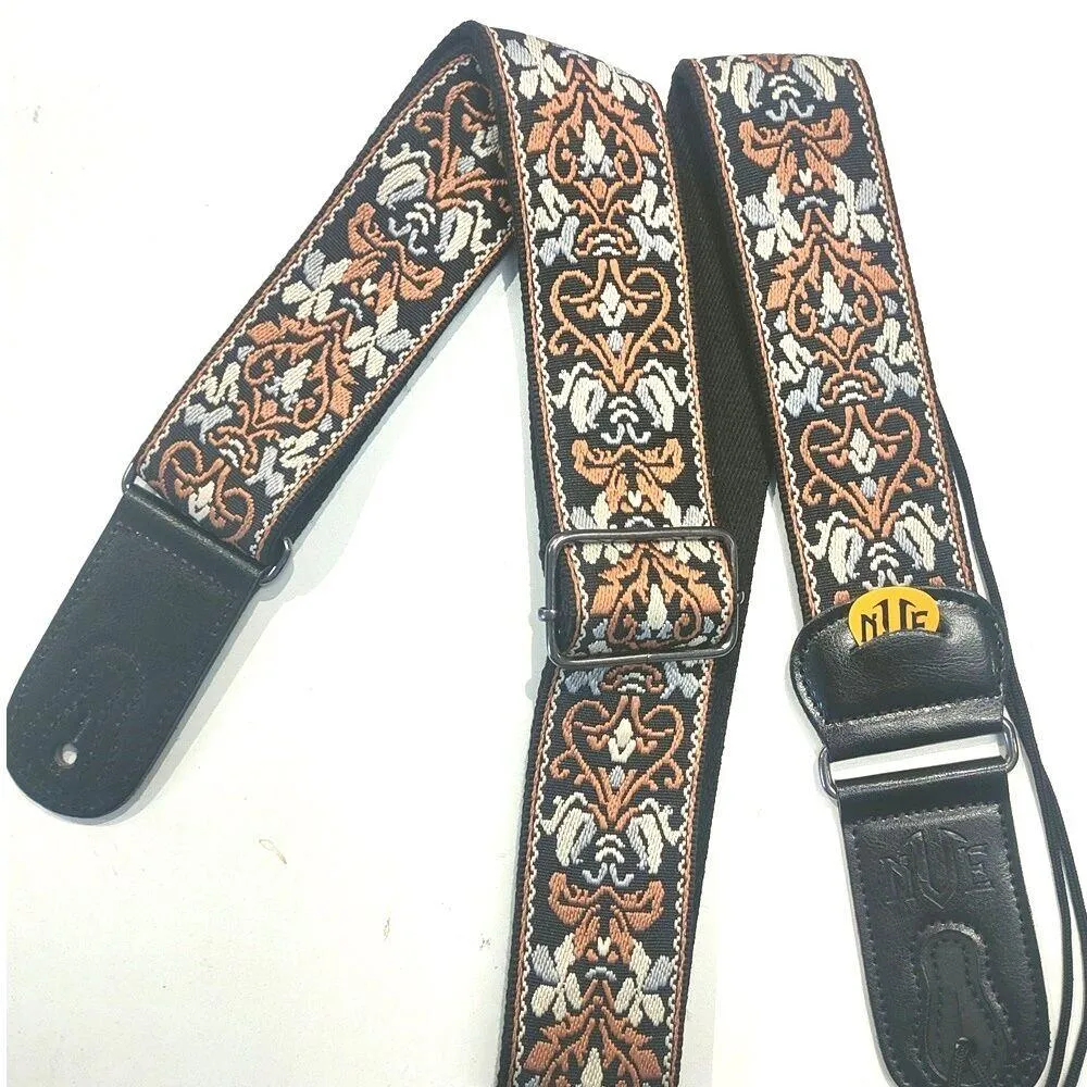 NVE jacquard guitar strap Leather Ends witth built in pick holder + 1 pick Sells Separately for $39