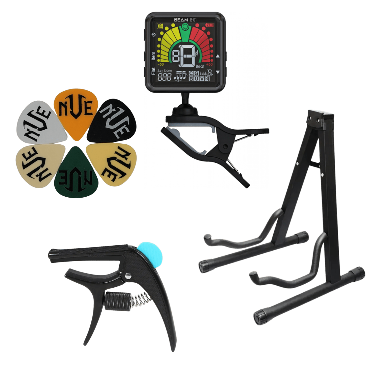 BBT Essential Acoustic / Electric Guitar Bundle - Stand - Capo - Tuner - Picks