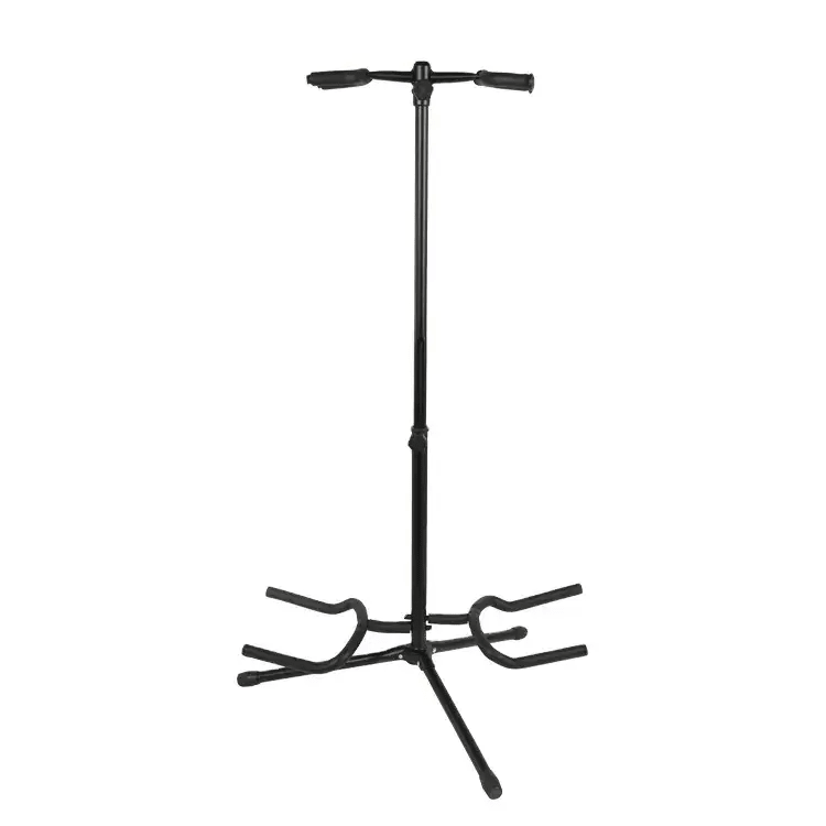 BBT Foldable Double Tripod Acoustic / Electric Guitar Stand - Black - Holds 2 Guitars