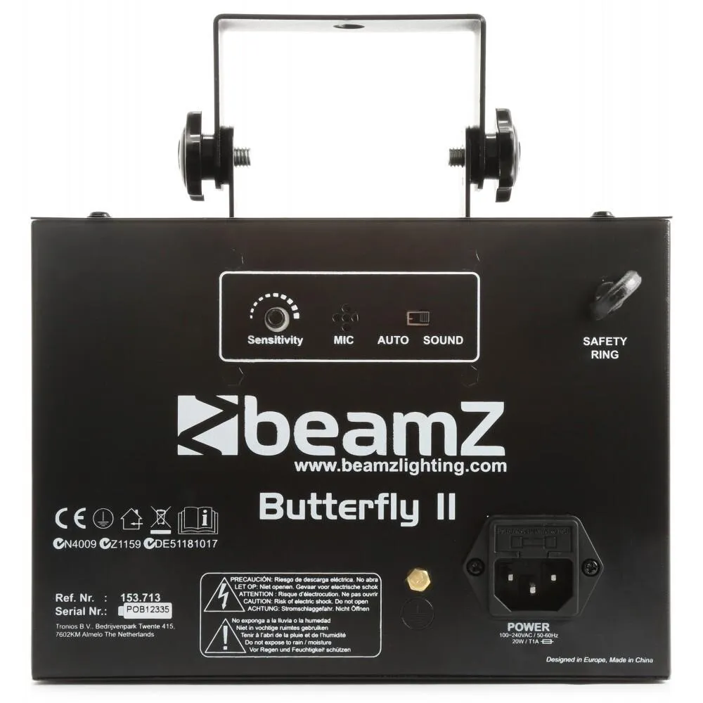 The Butterfly II is an update of the previous model. More LEDs, more colour and more control. You can now produce 48 beams in 6 different colours, totalling up to 288 single beams. All of this can be controlled with the supplied remote control (infra-red). A great effect for any starting DJ or entertainer but also very ideal for smaller venues where you have limited room but want a lot of light.
