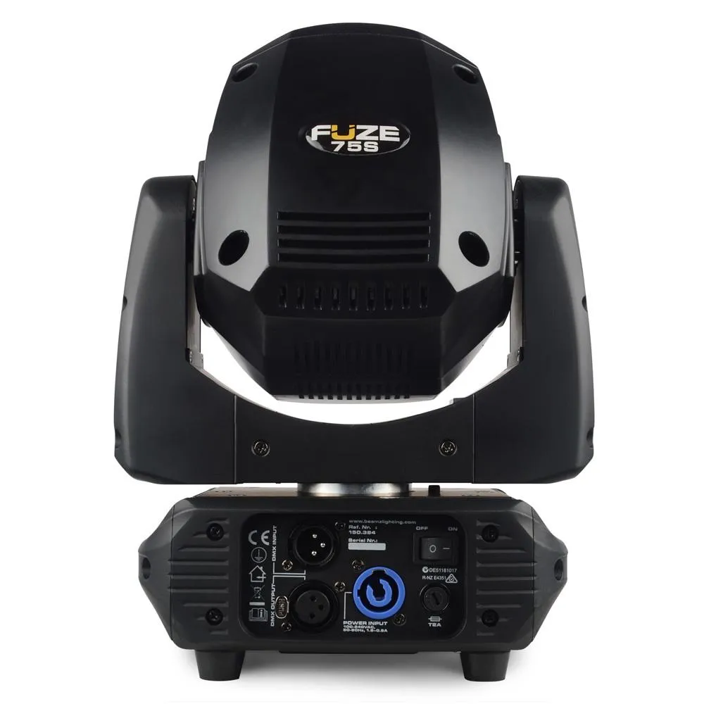 The Fuze75S Spot LED Moving Head is a lightweight and compact moving head featuring a powerful 75W LED. It produces sharp, light-coloured beams that can be customised using the colour and gobo wheels. The Fuze75S also features a 3-facet prism that splits the beam for great effects and to cover larger areas. Operation via DMX, Auto mode with exiting built-in light shows, Sound Active Mode or linked in Master/Slave mode. Perfect for lighting designers, DJs, bands, clubs, bars and installations where small footprint and low weight is critical.