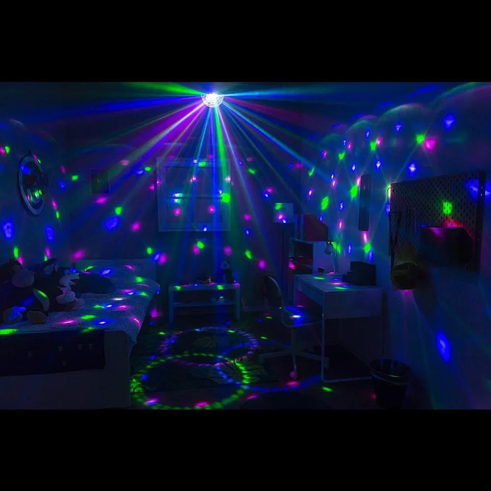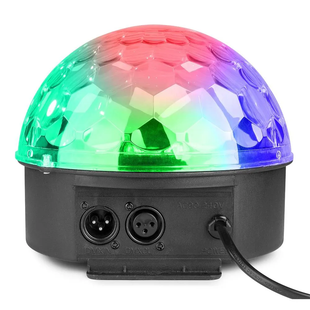 Turn your party, club, or other event into a blast with this spectacular lighting effect! This LED disco ball features bright LEDs in 9 different colours and has strobe and gradual lighting modes to choose from. This Star Ball projects 82 room filling beams that rotate on auto-mode or to the music on sound mode, as well as giving ambient light from the clear dome. The JB90R is also DMX controllable, so you can create impressive and versatile light shows suitable for all kind of parties and events. Enjoy the fantastic lighting pattern running across your wall and ceiling.