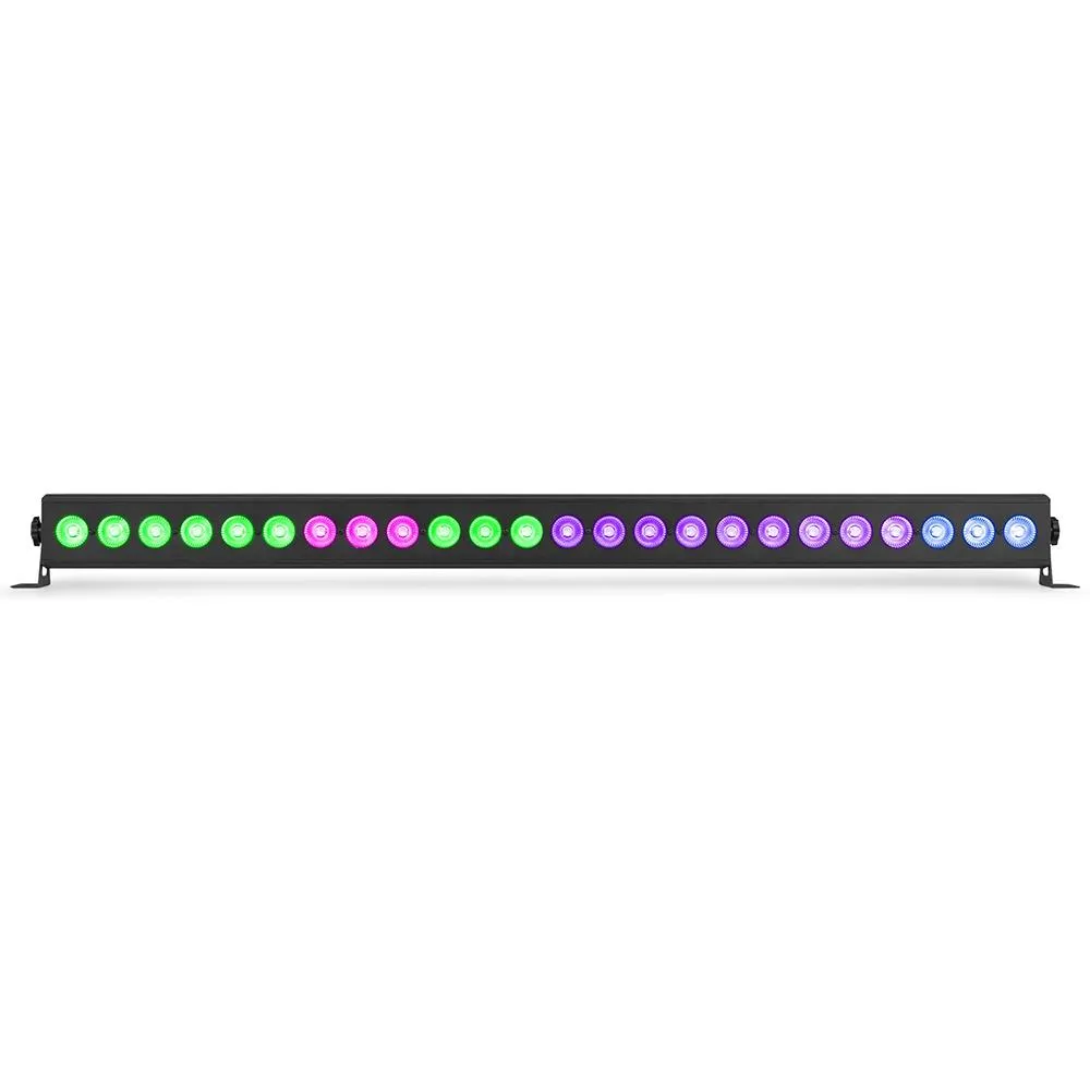 The LCB246 is a LED bar equipped with 24x 6W pieces RGBAW-UV LEDs. The LEDs are divided into 8 individually controllable sections of 3 LEDs each. While using the fixture in stand-alone mode there are pre-programmed shows that you can run automatically or sound activated, pick from the pre-set colour macros or create your own mixture of colours in RGBAW-UV mode. The extra power output enables you to simply link the power of multiple units together into a single socket.