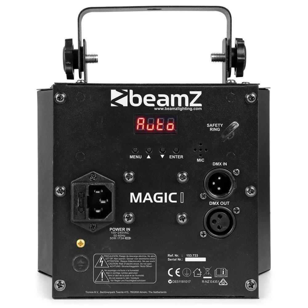 The Magic1 Derby combines the power of 2 effects into 1. The combination of the powerful strobe with the colourful sharp and edgy LED beams are a guaranteed party boost. The pre-programmed shows combined with the master/ slave mode make the Magic1 Derby a good go-to effect for the mobile DJ and entertainer. For the advanced users there is a 7 channel DMX mode with control of each LED and motor, thus making it also very useable for shows or events.