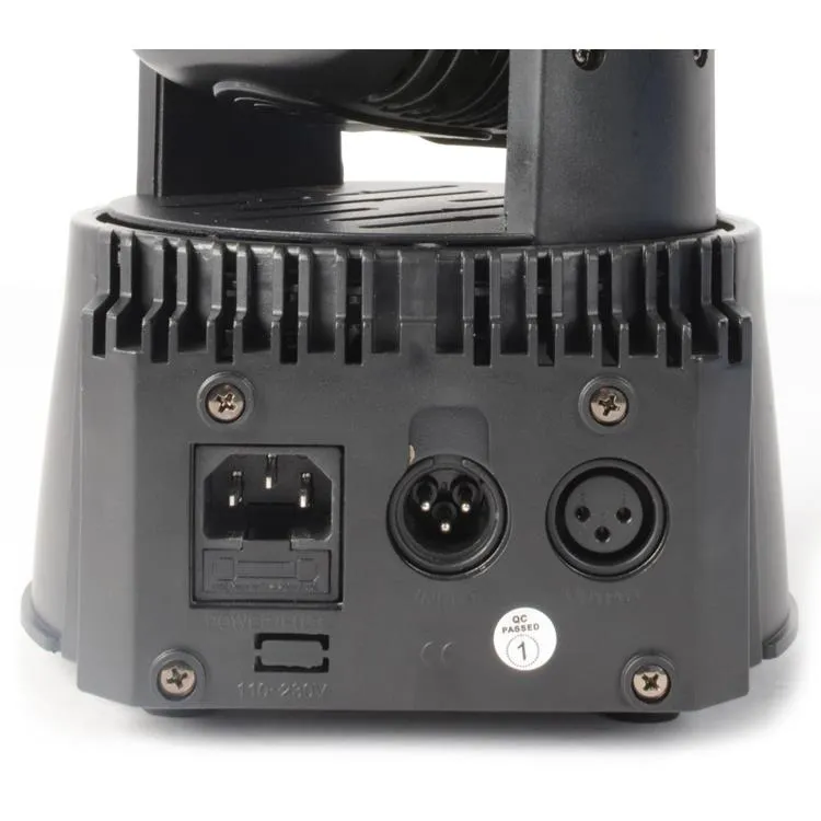 A very compact LED moving head wash for professional use, based on 5x 18W (RGBAW-UV) 6-in-1 colour LEDs, characterizing an extremely high light output to produce an ingenious light show with colourful wash effects. The UV light provides an extra dimension to white clothing and objects illuminating brightly. Comes with 4 operation modes and an 11 or 15 channel DMX mode, DMX controllable strobe-speed, electronic dimmer, smooth and very fast pan and tilt movements etc. Suitable for use in clubs, bars, discos, on parties and DJ moving shows.