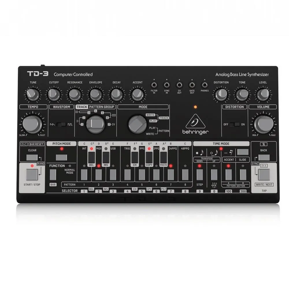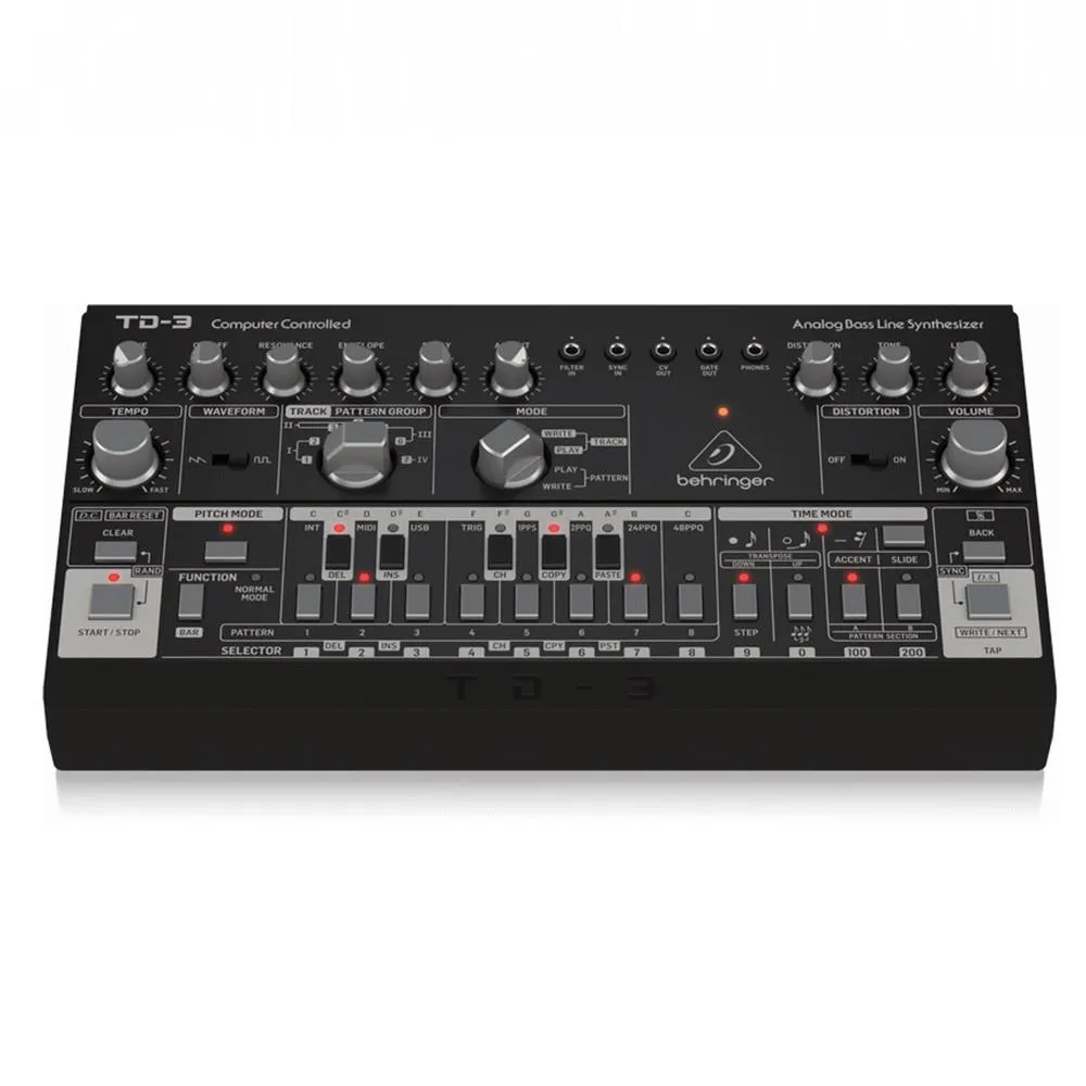 Hearkening back to the genesis of electronic music, the Behringer TD-3 analog synthesizer and sequencer produces the throbbing rhythms and greasy bass sounds that have defined electro-funk, acid, techno, and house for the last 30 plus years. The TD-3 is an authentic interpretation of its iconic predecessor, with an all-analog signal path, a 16-step sequencer, transistor wave-shaping circuitry, a built-in arpeggiator, and a four-pole resonant lowpass filter that oozes with character. Grimy, squelching, and unapologetic, the TD-3 is a retro-style groove machine reincarnated for contemporary producers and sound designers that you’re sure to love.