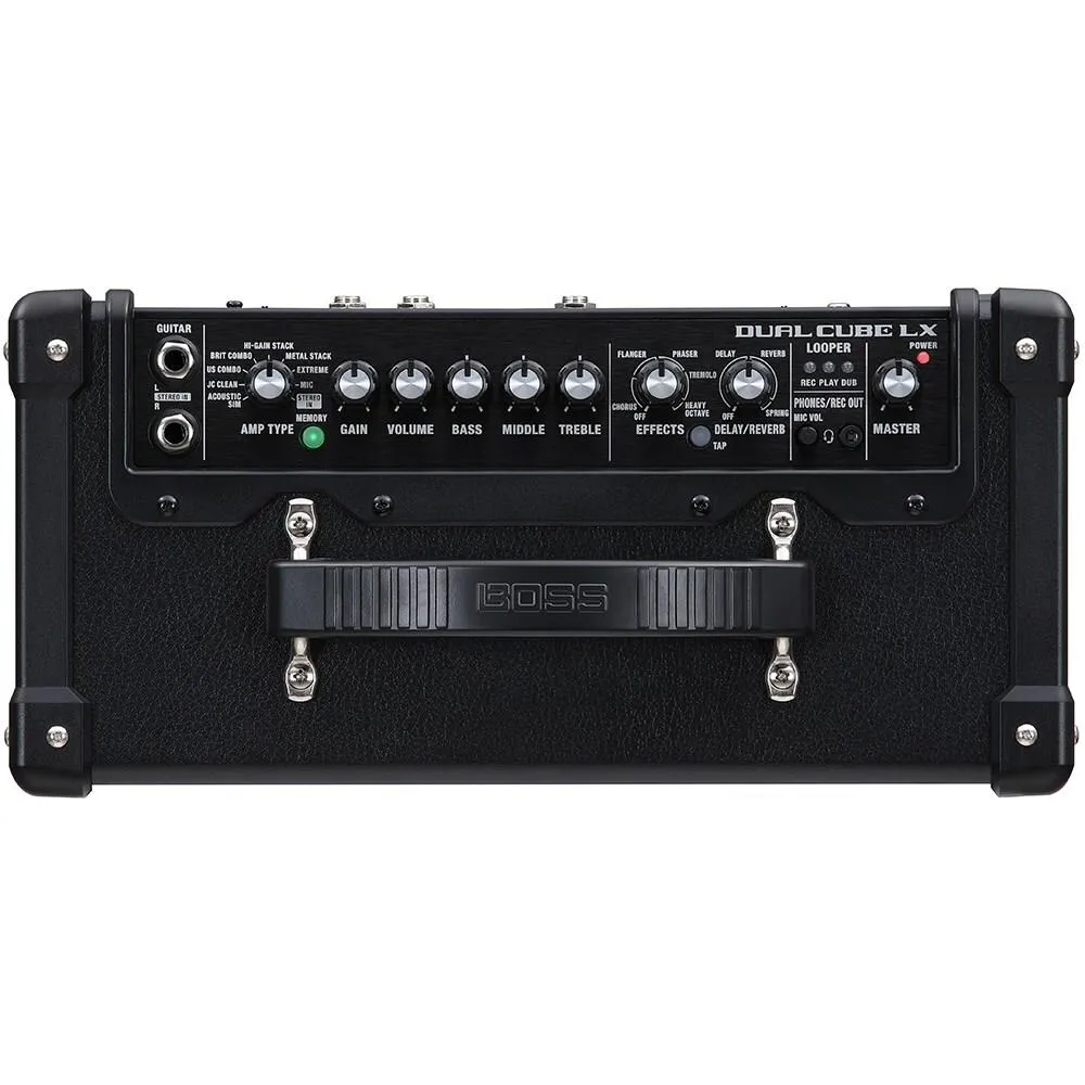 For over four decades, CUBE amplifiers have brought exceptional value to musicians everywhere, offering great sound and versatile features in portable, go-everywhere designs. The DUAL CUBE LX Guitar Amplifier carries on this long tradition, evolved with the latest BOSS advancements for unmatched flexibility. This desktop powerhouse is the ultimate guitar amp for home practice and jamming with friends. And with a generous array of connectivity options, its range extends to performing, recording, and many other applications.