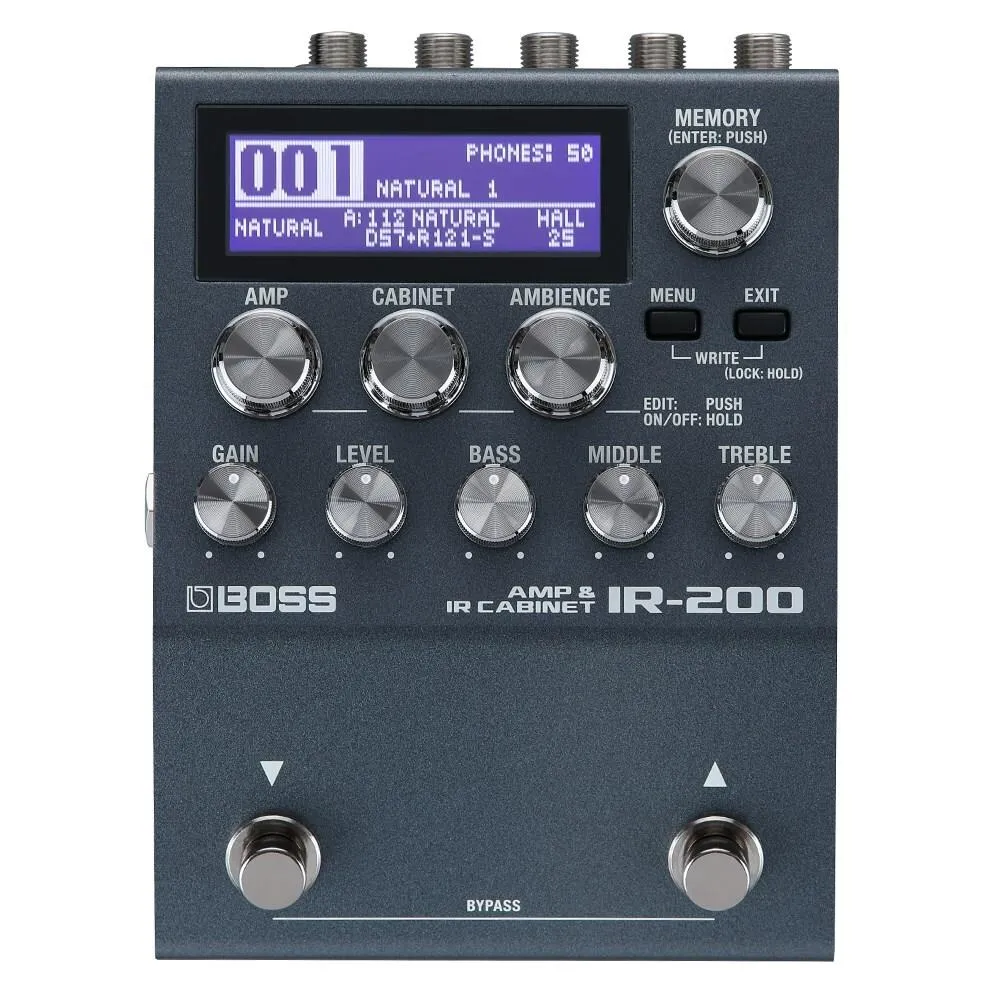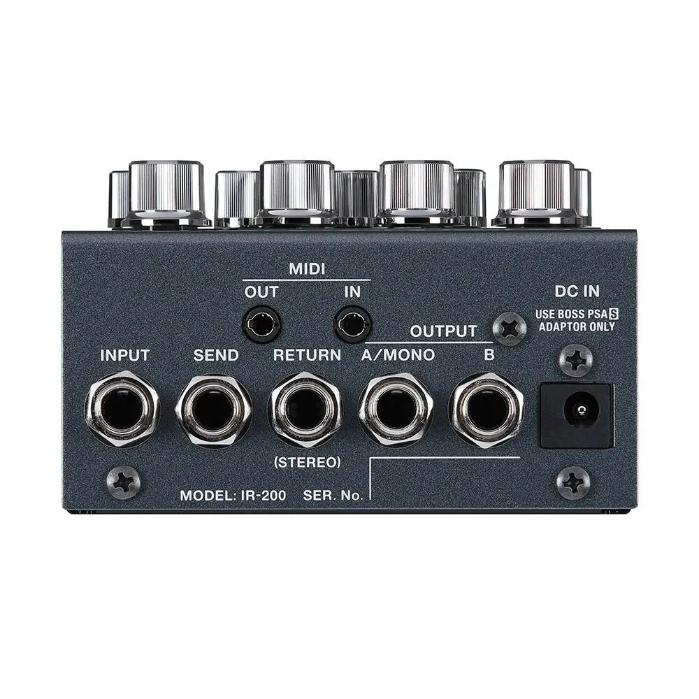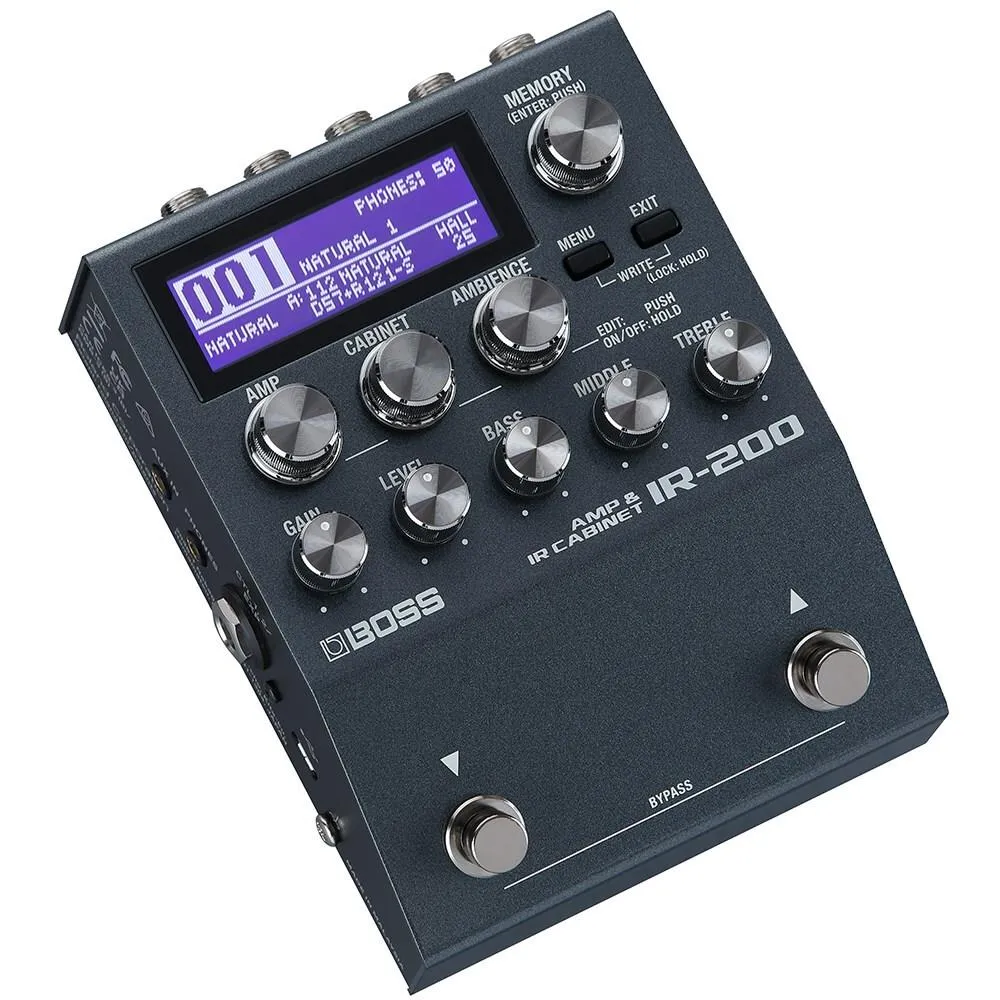 Introducing the IR-200, the most advanced compact amp/IR solution available. This powerhouse stomp brings next-level performance to direct sound for guitar and bass, offering exceptional audio quality, premium amps, deep sound shaping, and instant sound recall with 128 memories. Over 150 hi-res cab impulse responses from BOSS and Celestion Digital are on board, plus 128 locations for loading your own mono or stereo IRs. The IR-200 turns your pedalboard into a self-contained direct sound solution for live playing, studio recording, and practice. It delivers massive amp tones from a small footprint and smoothly integrates with all your favourite pedals, including stereo mod, delay, and reverb effects. And once you craft your tones, you can send them to a stage amp, house PA, computer recording system, or headphones—or all at once.