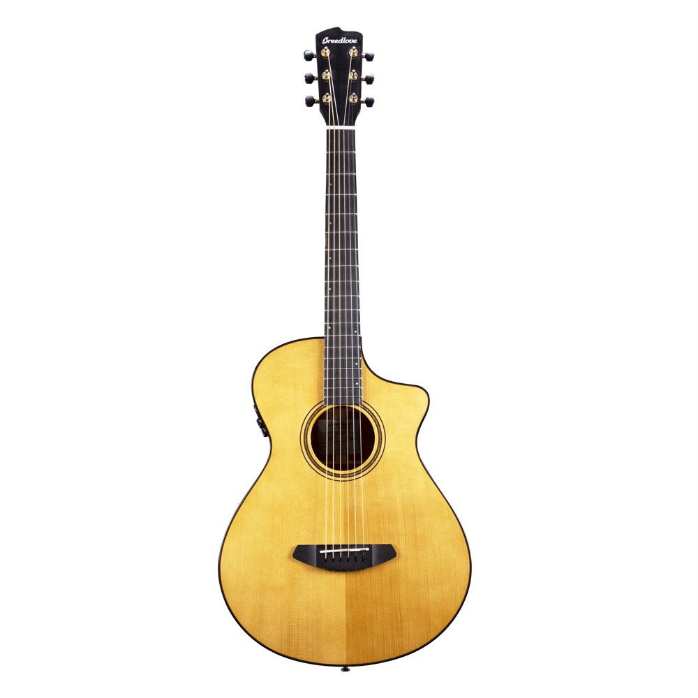 Breedlove’s small body guitar, delivering a surprisingly clear, crisp, loud sound. It’s 12-frets to the body design make it a joy to play. Extensive Sound Optimization™ engineering has resulted in a body shape that has a bigger sound and is more comfortable to play than a traditional parlor.