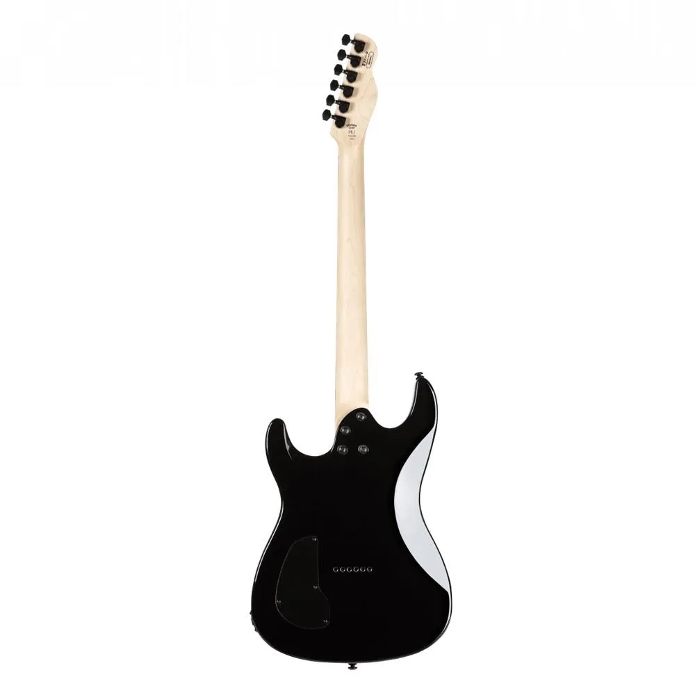 A modern recessed bolt-on neck construction with ergonomic cutaways, combined with a Flame Maple neck and Macassar Ebony fingerboard are perfectly designed for hours of comfortable and tasty shredding. A Flame Maple top with an Abyss finish makes for one head-turning guitar, as well as adding just enough brightness to the warmth of the Mahogany body.