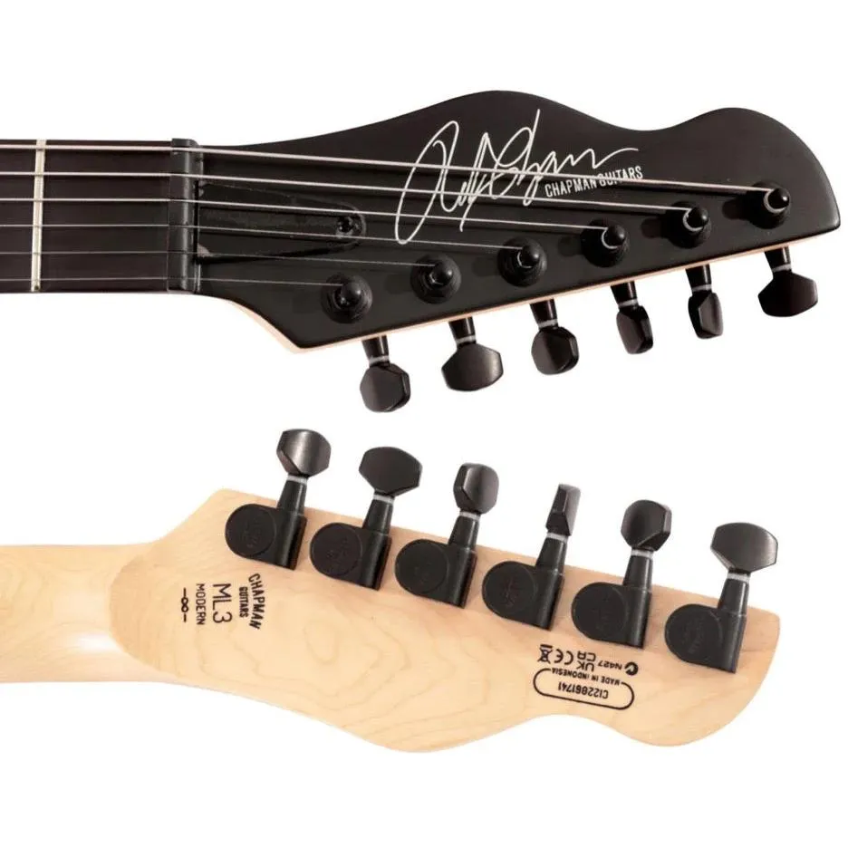 Premium body construction Chapman’s ML3 Modern’s thin lightweight Alder body and satin Ash veneer is an exquisite blend of form and function and is perfect for the cross-genre musician. It’s ergonomically contoured but the shape and build also provides a balanced tonal foundation.