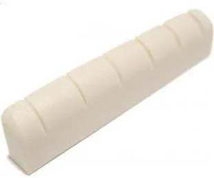 Slotted bone nut for acoustic guitar. 43.2mm (l) x 4.8mm (w) x 8.7mm (h). 35mm E to E String Spacing.