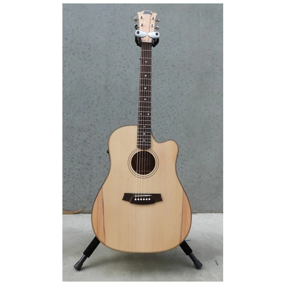 Built to exacting specifications, this cutaway dreadnought guitar features an internally carved top and back, providing outstanding projection and resonance. The Queensland Maple neck ensures stability and a comfortable playing experience. The solid Bunya top delivers a rich and warm tone, while the Queensland Maple back and sides contribute to its overall projection. With inlaid timber binding, purfling, and rosette, the FL2EC Bunya/Queensland Maple is as visually stunning as it is sonically impressive. The Grover machine heads ensure precise and stable tuning, while the Graph Tech Tusq nut and saddle offer consistent performance. Strung with Phosphor Bronze 12-53 strings, this guitar produces a balanced and vibrant tone, perfect for a wide range of musical styles.