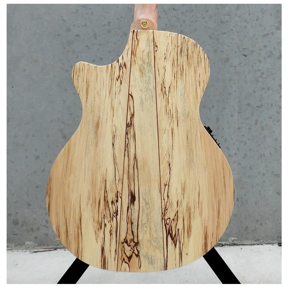 - All solid timber cutaway Grand Auditorium with internally carved top and back