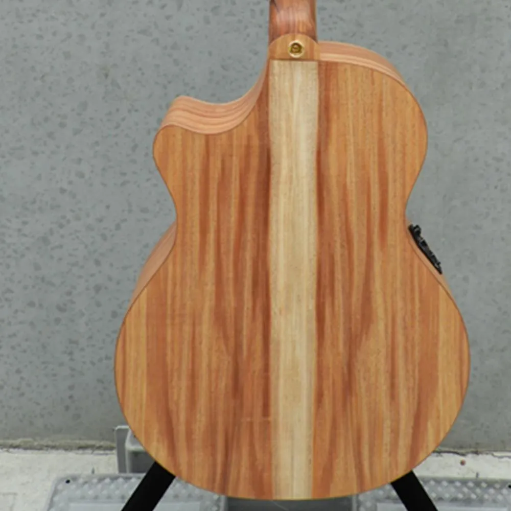 - All solid timber cutaway grand auditorium with internally carved top and back