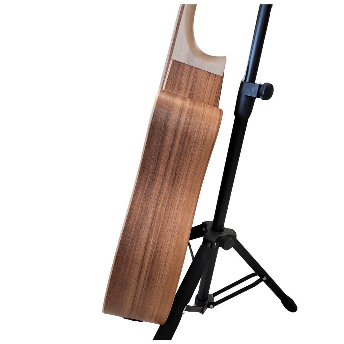 Cole Clark steel string acoustic guitars are the only main stream acoustic to use a Spanish heel or integral neck construction. This means the neck is glued to the face along with the sides and the back so the neck is one piece all the way to the sound hole. On other guitars, the body is made then the neck attached, mostly with a bolt or dove tail join. Due to our method, the sound is unique. Cole Clark also has a carved top and back and uses a ridge system to join the sides to the top and back instead of kerfing.