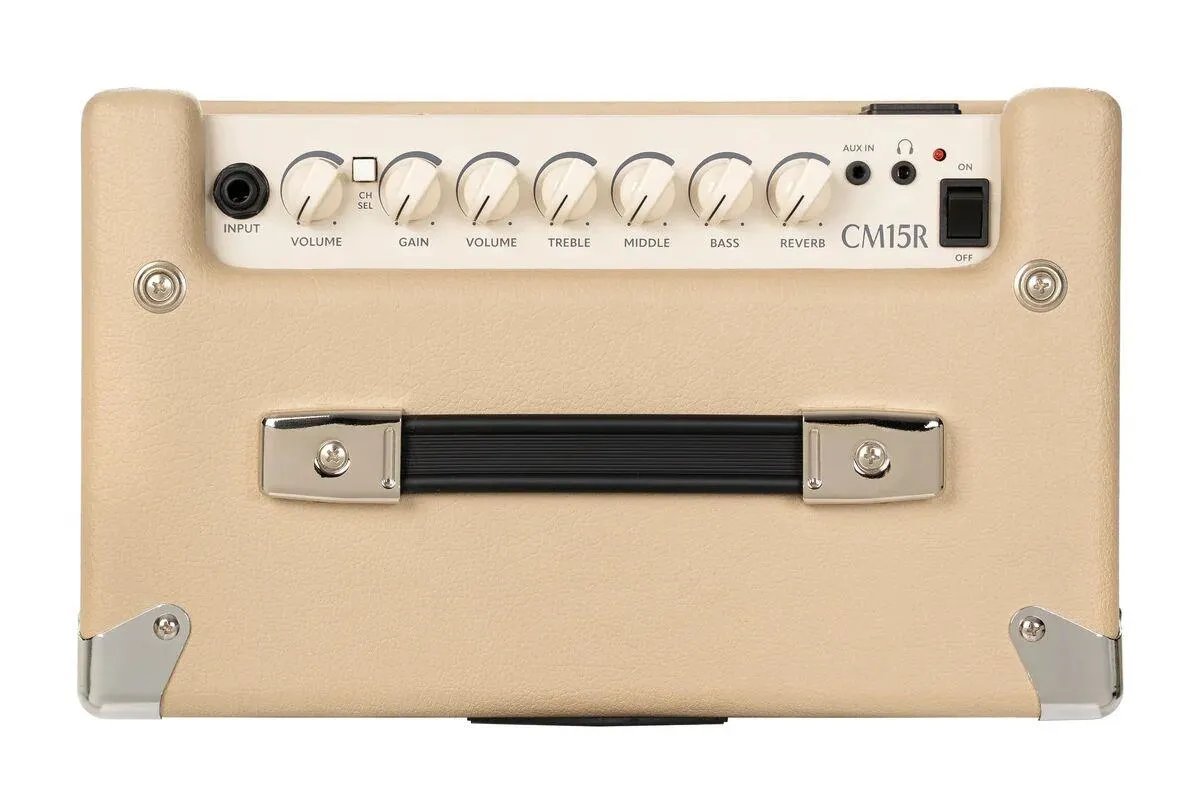 The CM15R offers a wide range of clean and overdrive sounds with a sparkling clean channel and a rich-sounding overdrive channel with independent gain and volume controls and a 3-band EQ with the treble, middle and bass knobs specifically tailored to the sonic range of the electric guitar. The gain control provides a wide range of overdrive from bluesy crunch to over-the-top modern distortion. The push-button channel selector allows you to switch from the clean channel to overdrive/distortion channel and back easily, making the CM15R a very versatile amp in its class.