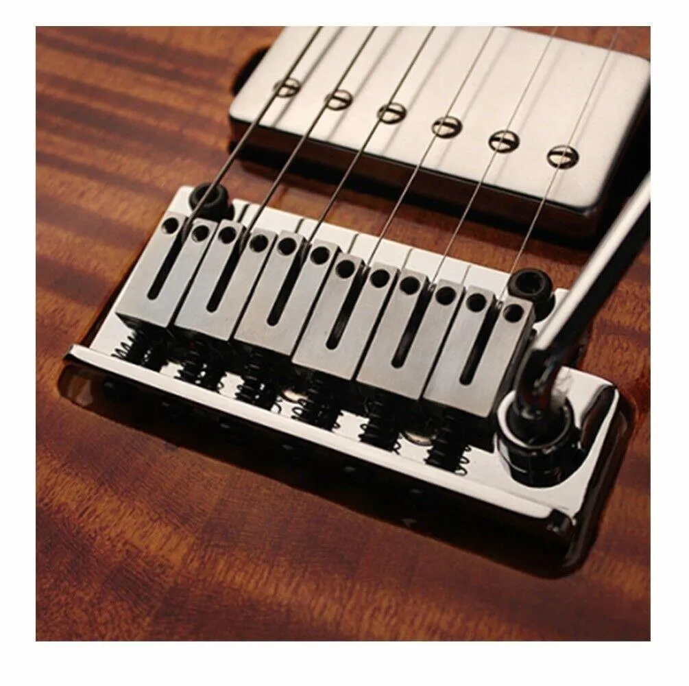 This uncompromising tremolo system features stainless steel saddles, solid machined steel block, and steel baseplate to provide greatly improved sustain, faster and punchier pick attack and a more coherent and balanced fundamental tone.