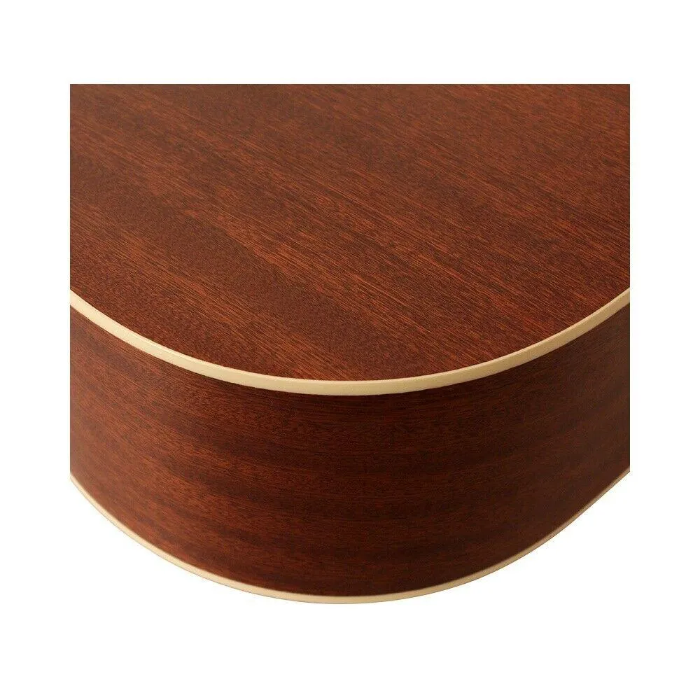 Bright yet natural with a strong and warm midrange, the beloved mahogany wood has been a standard for back and sides on premium acoustics for many decades.