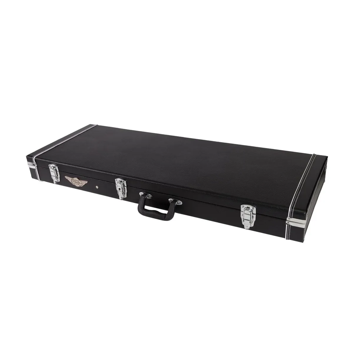Keep your musical investment secure with the Crossfire standard rectangular ST and TL Style Electric Guitar Hard Case. Features heavy duty plywood construction, black vinyl exterior covering, black plush padded interior, moulded plastic carry handle, accessories compartment, metal feet on base and back, as well as chrome latches (central latch is lockable).