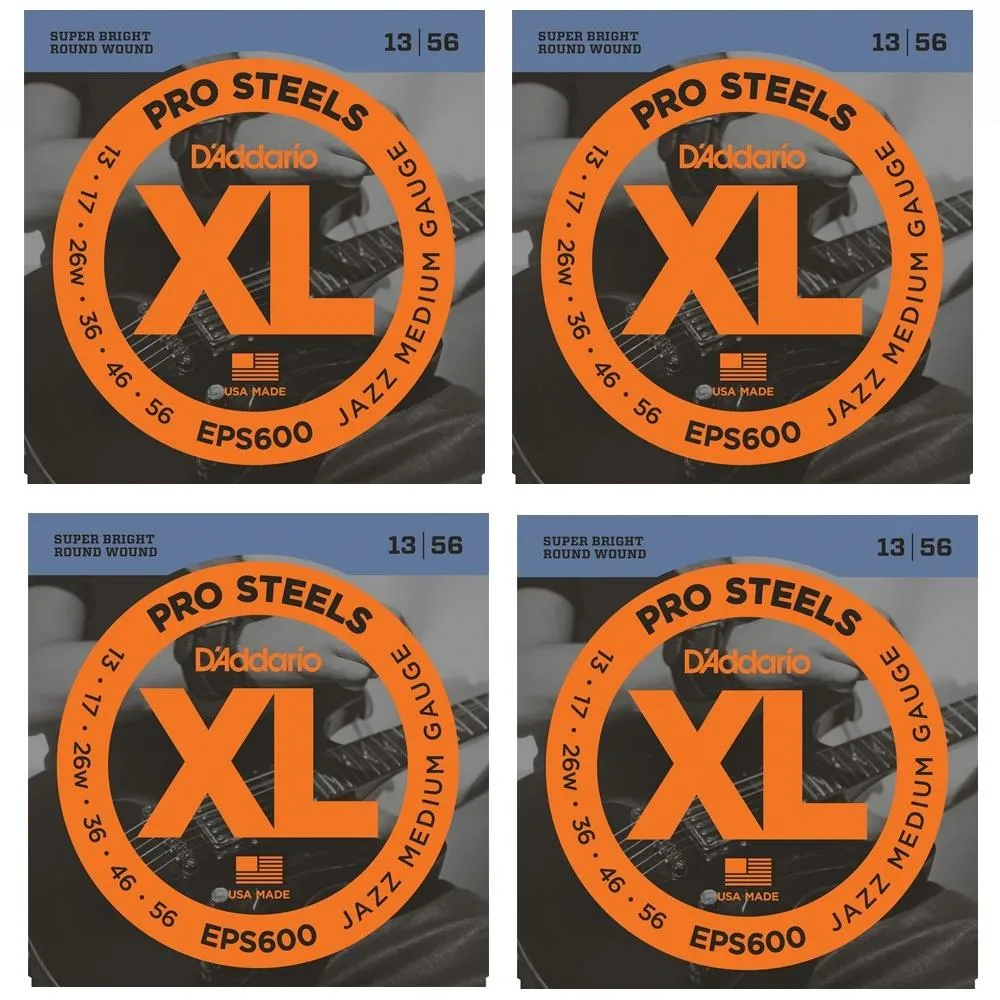 D'Addario 4 SETS EPS600 ProSteels Electric Guitar Strings, Jazz Medium, 13 - 56