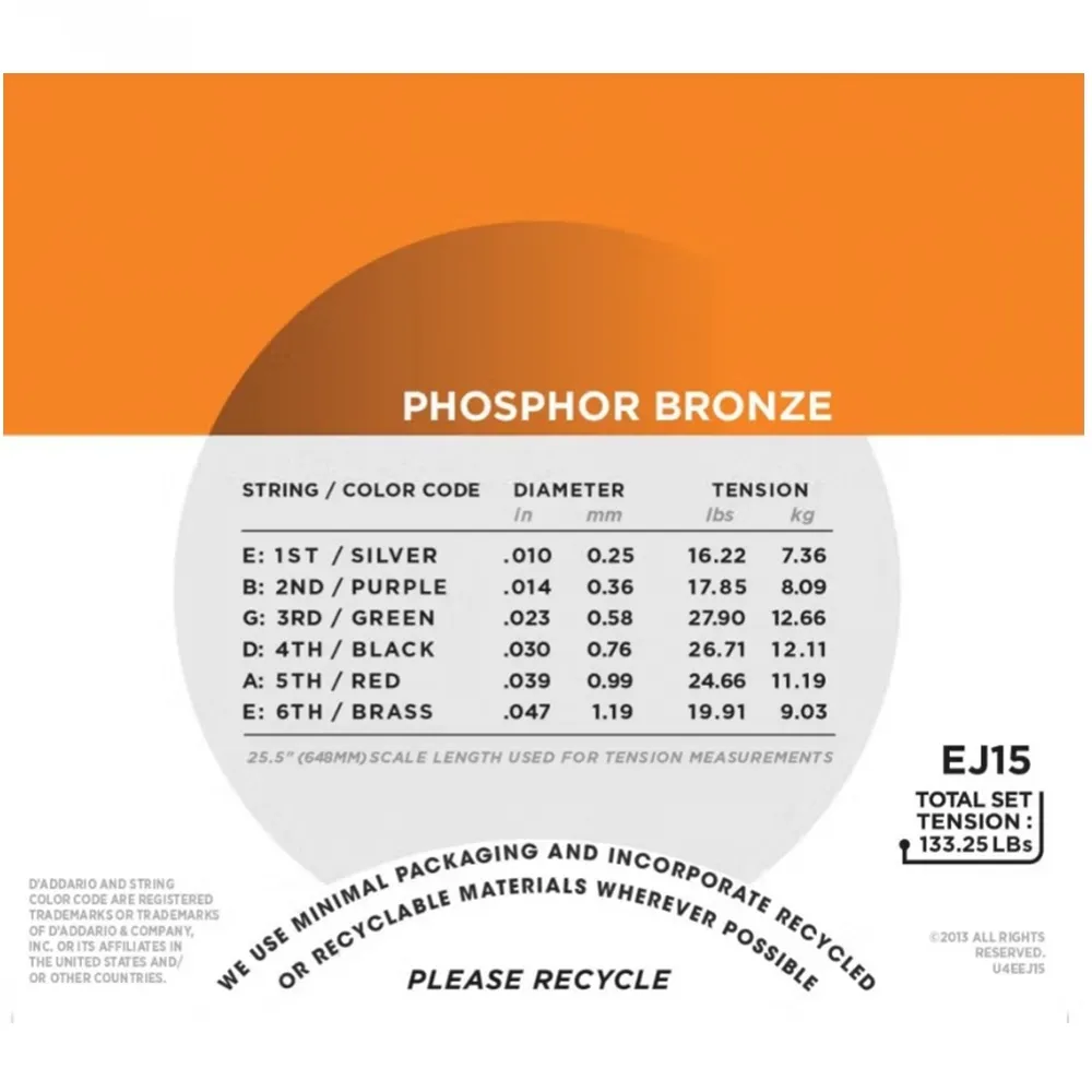D’Addario EJ15 strings are extra-light gauge, measuring 10–47.
