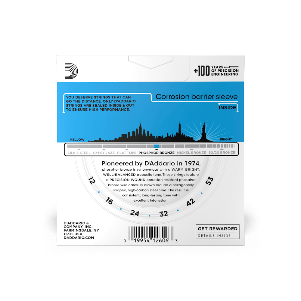 • String Gauges: Plain Steel .012, .016, Phosphor Bronze Wound .024, .032, .042, .053