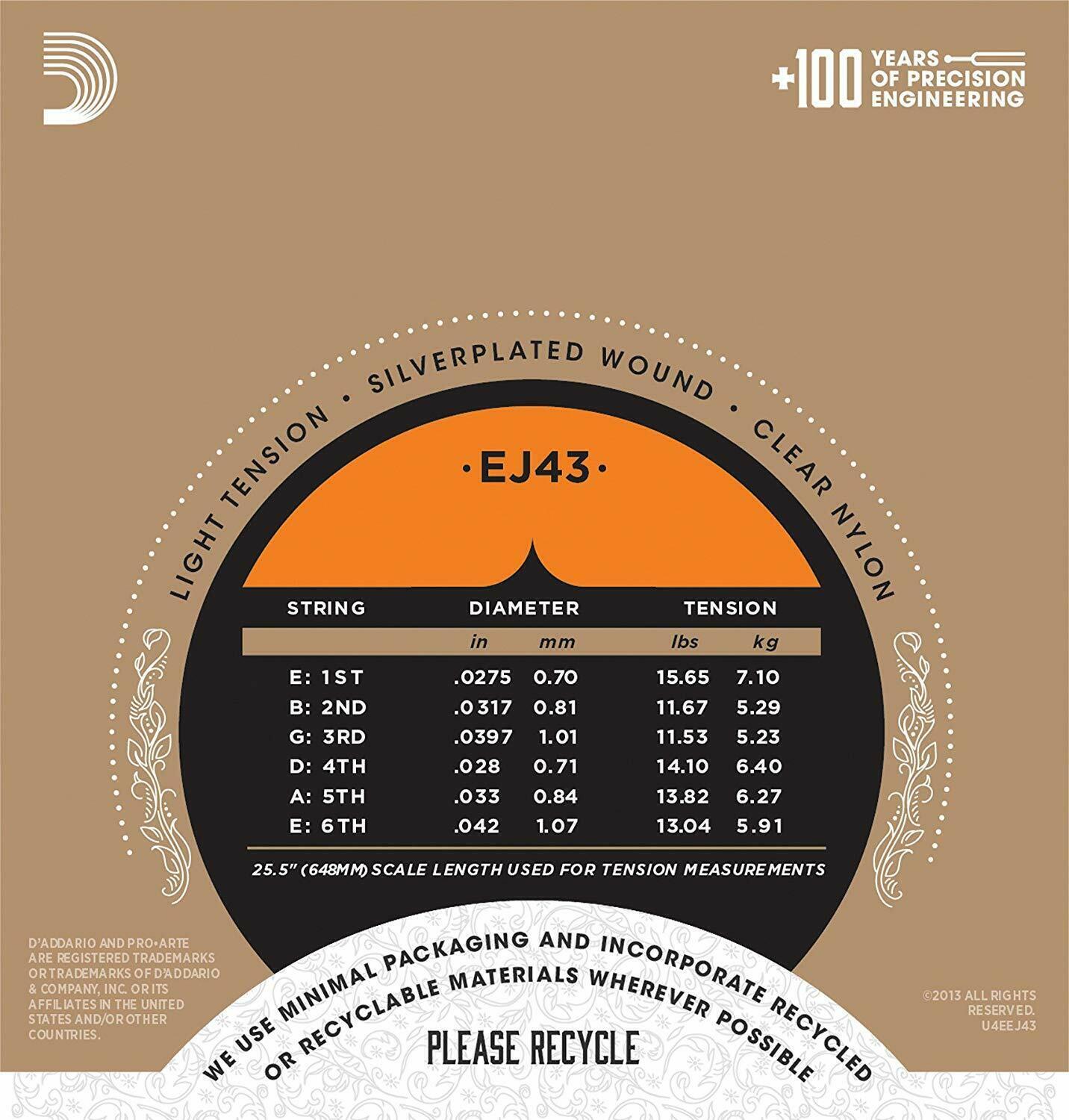 D'Addario EJ43 Pro-Arte Classical Guitar Strings - Light Tension Nylon Core