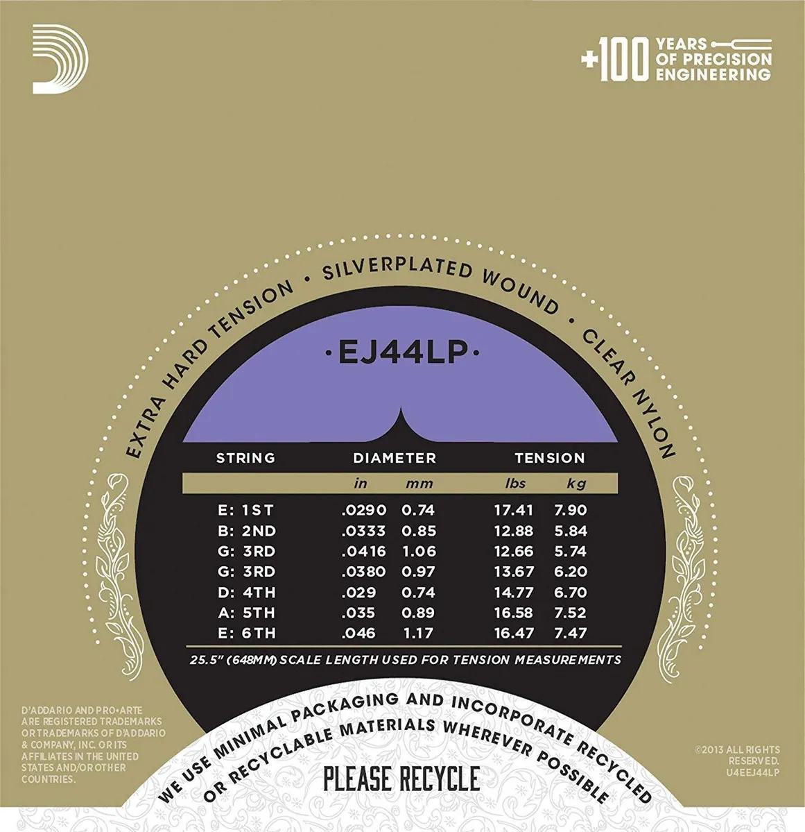 EJ44LP "lightly polished", extra-hard tension classical strings are optimal for maximum string resistance and projection without compromising tone.