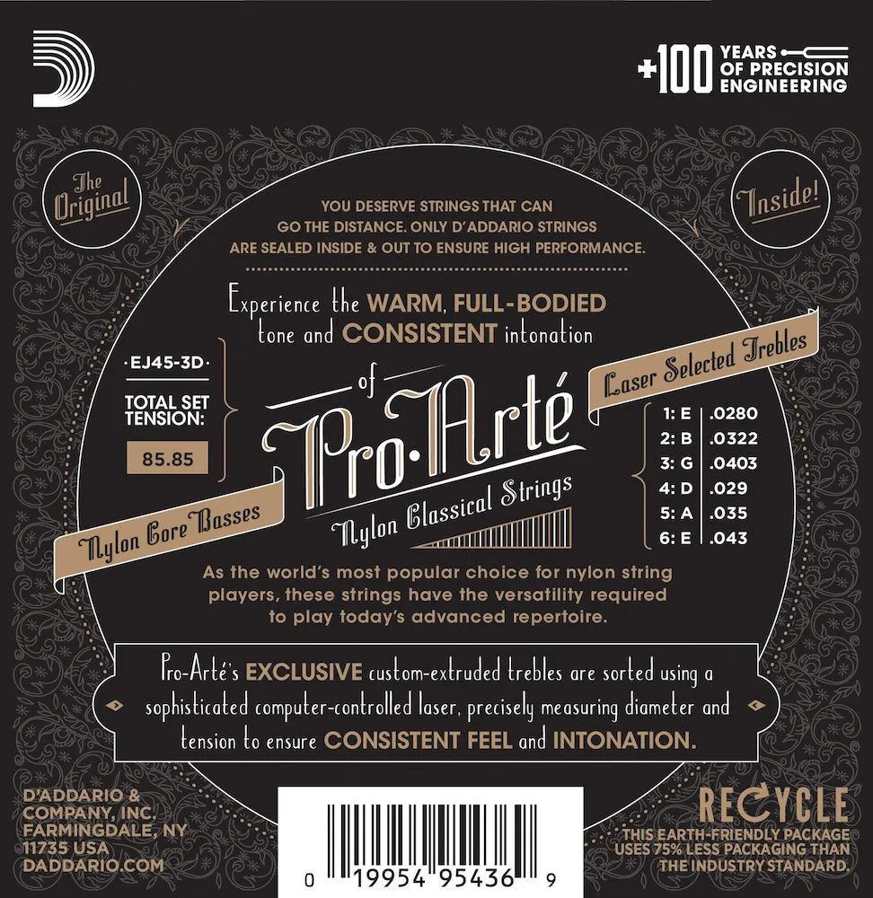 • D'Addario's best selling Pro Arte set, Normal tension offers a balance of volume and comfortable resistance