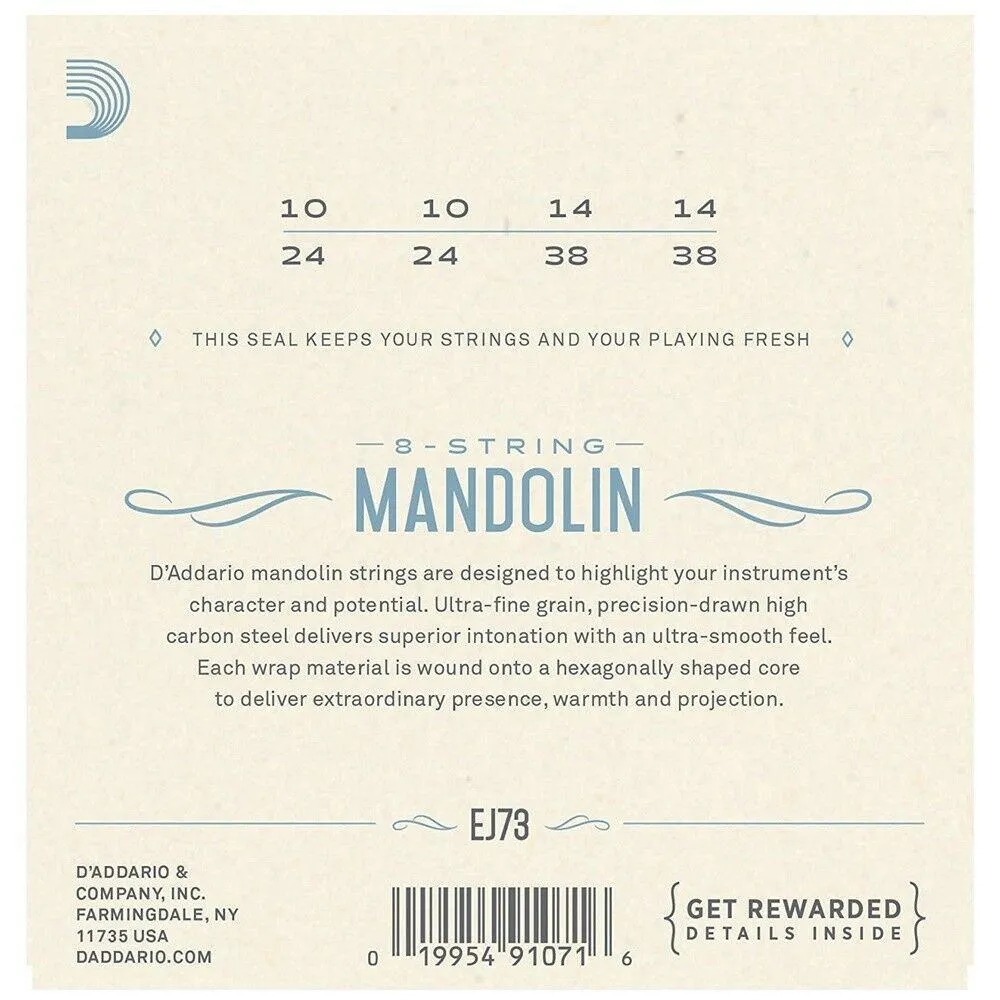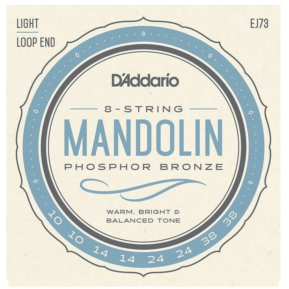 - D'Addario's most popular light gauge mandolin strings^Loop end construction for universal fit^Phosphor Bronze for long lasting, warm and bright tone^Made in the U.S.A. for the highest quality and performance^String Gauges: Plain Steel .010/.010, 014/.014, Phosphor Bronze Wound .024/.024, .038/.038