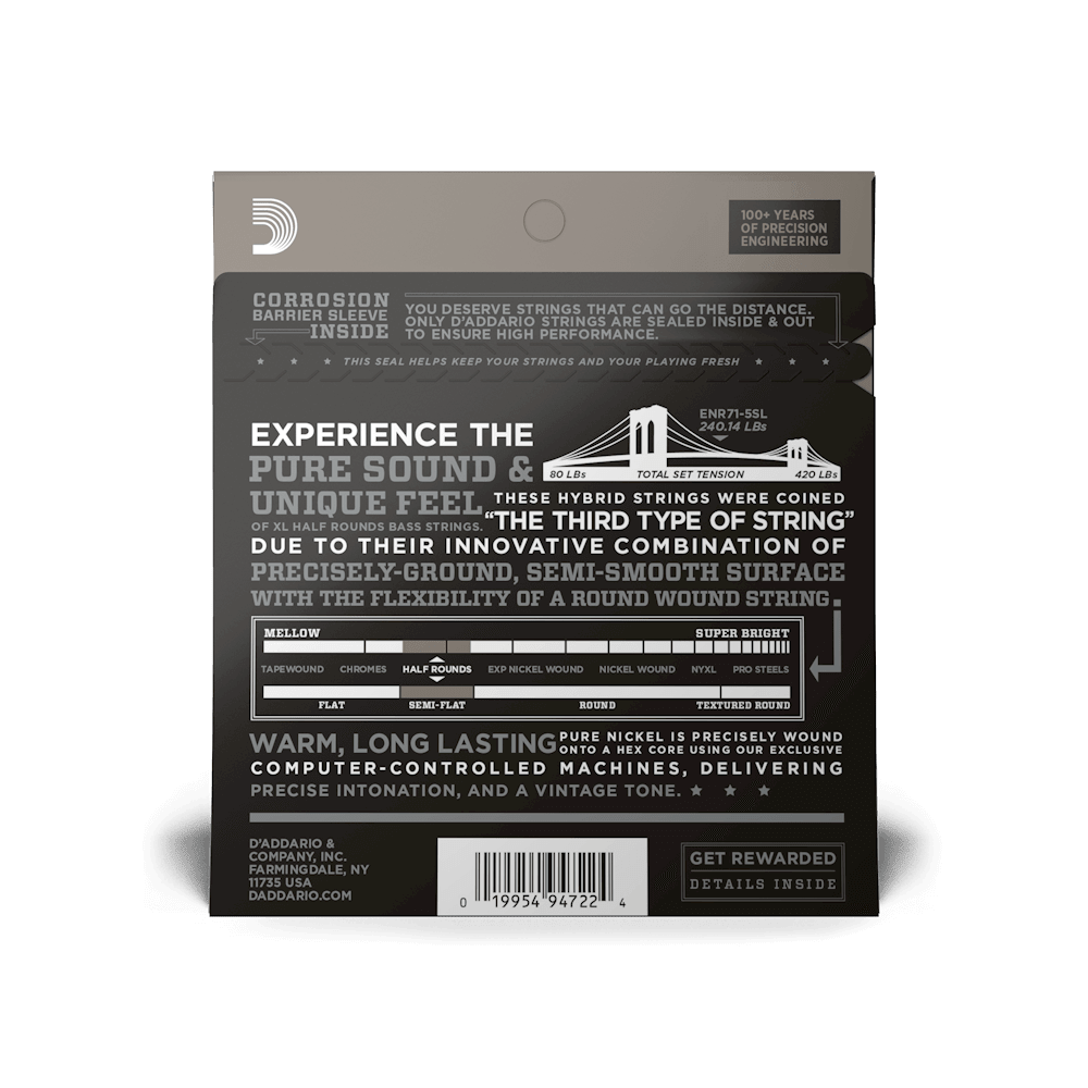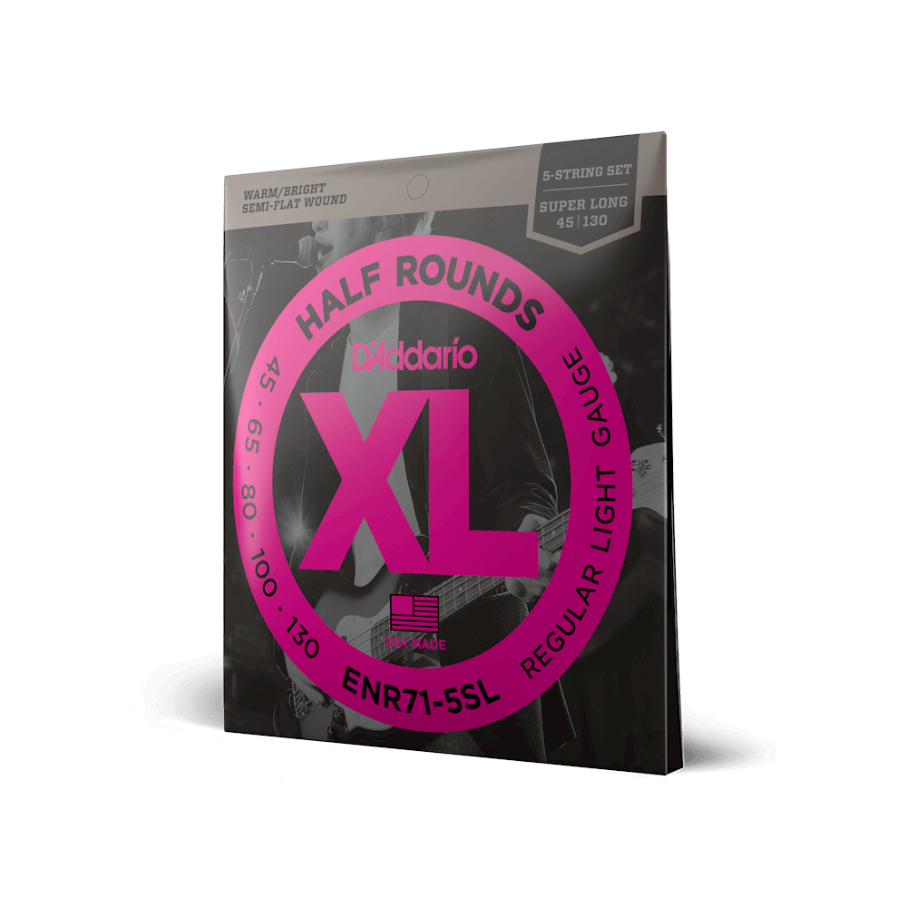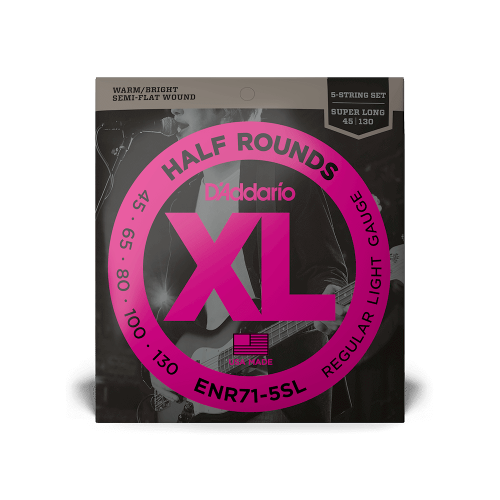 • 45-130 gauged 5-string set with the benefits of an exclusive "Half Round" manufacturing process