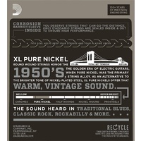 D'Addario XL Pure Nickel strings look back to the '50s, when nickel was the primary alloy found in electric guitar strings. Pure nickel strings would be supplanted by nickelplated steel in the '60s when guitarists required brighter tone and enhanced magnetism. Pure Nickel brings back the richer, warmer timbres found in traditional blues, classic rock, rockabilly, and more.