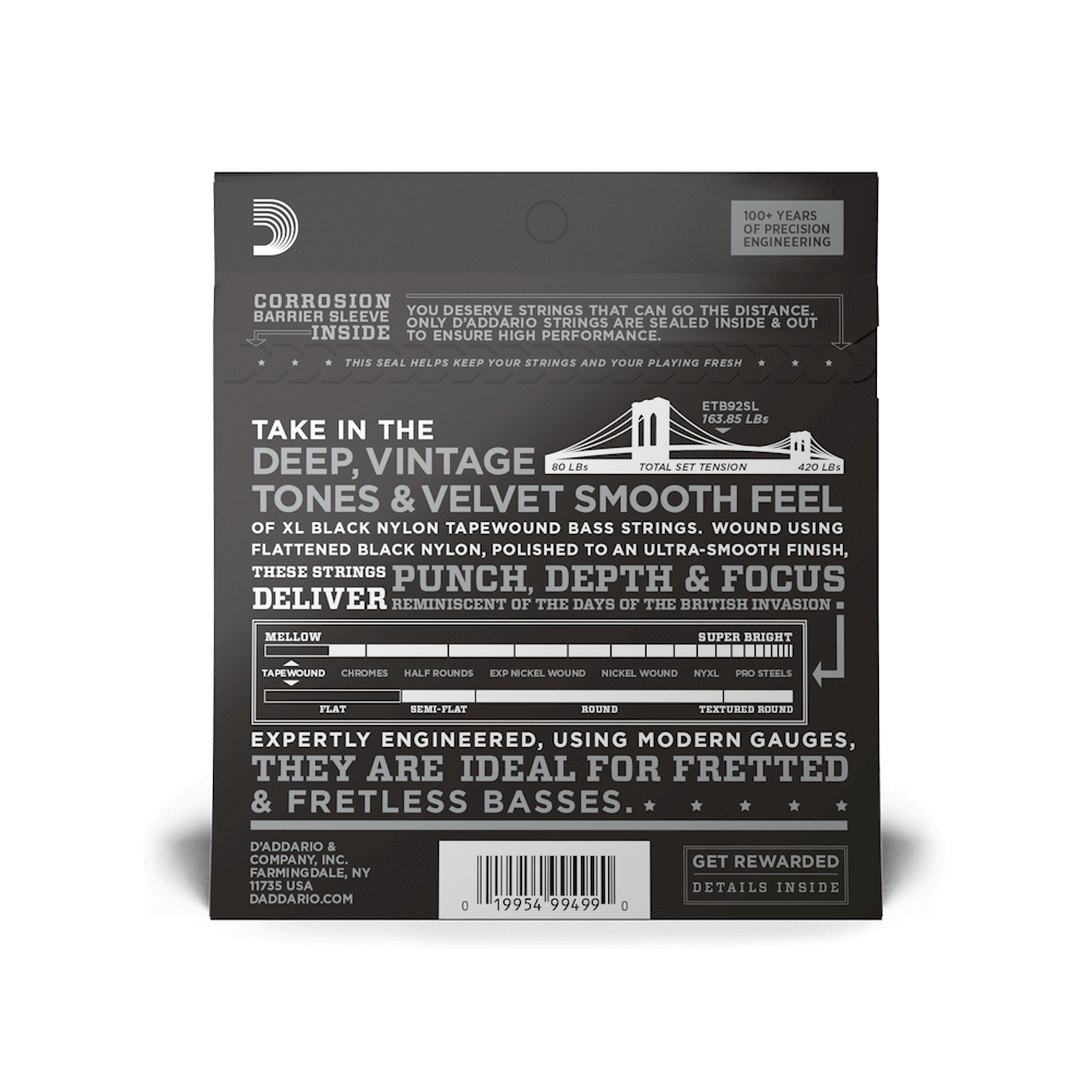 • Engineered to provide optimal tension and gauged to fit properly on standard bass saddles and nuts