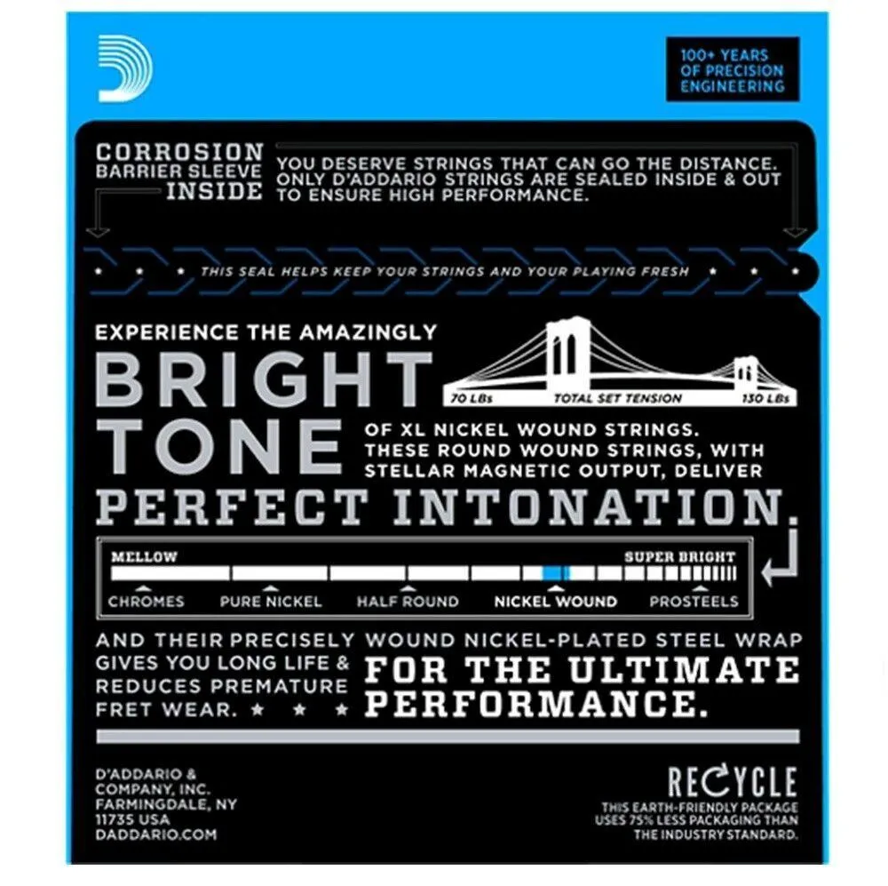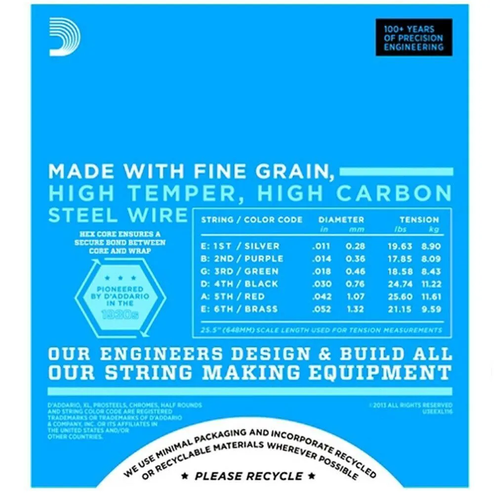 D'Addario EXL116 XL Electric Guitar strings are world-renowned as "The Player's Choice" amongst guitar players of all genres and styles. XL strings are wound with nickelplated steel and are known for their distinctive bright tone and excellent intonation. This custom gauge set with medium gauges for the top strings and heavy for the low strings will give you clear voiced mids and highs with thunderous lows. Great for soloing.