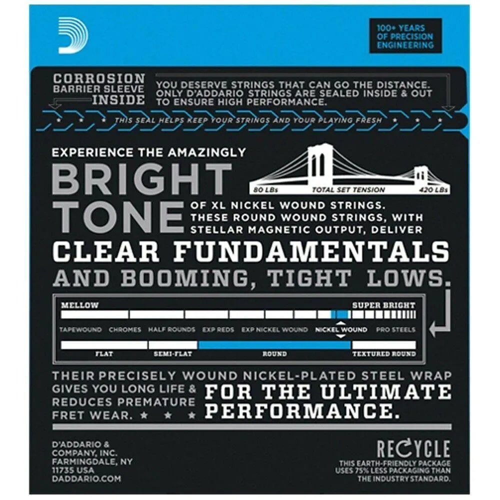D'Addario EXL165 Nickel Wound Long Scale Bass Guitar Strings 45 - 105 4-String
