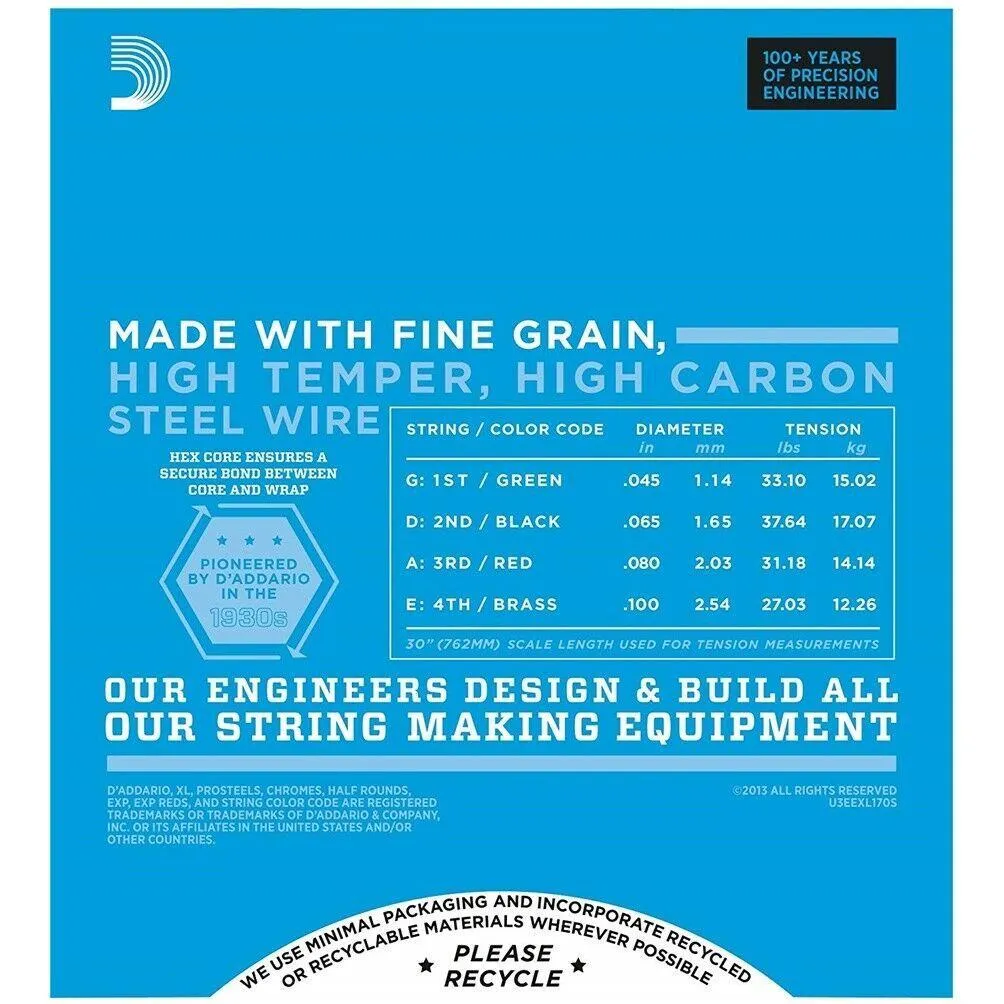 D’Addario EXL nickel wound bass strings are the most widely used bass strings worldwide. The EXL170S set is optimized for short scale instruments, ensuring proper tension, comfortable playability, and clear tone.