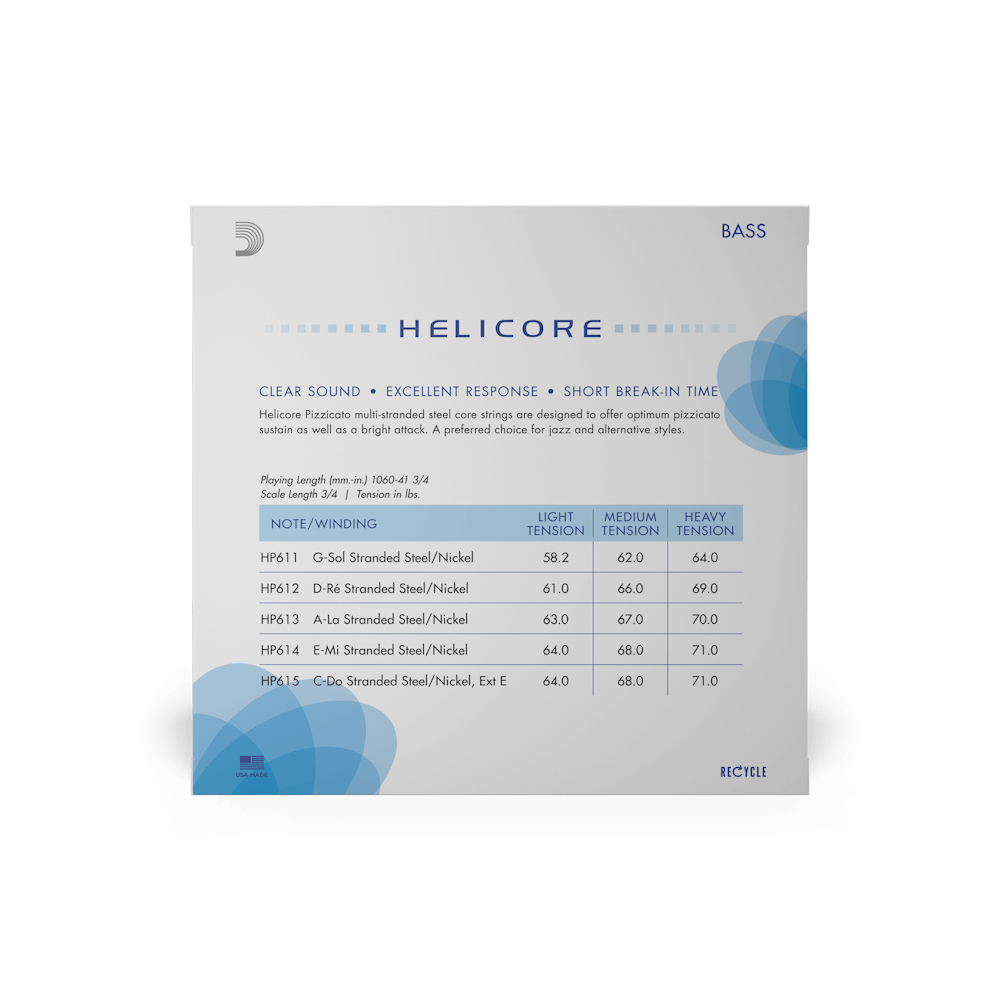 D'Addario Helicore Pizzicato Bass Single D String, 3/4 Scale, Heavy Tension